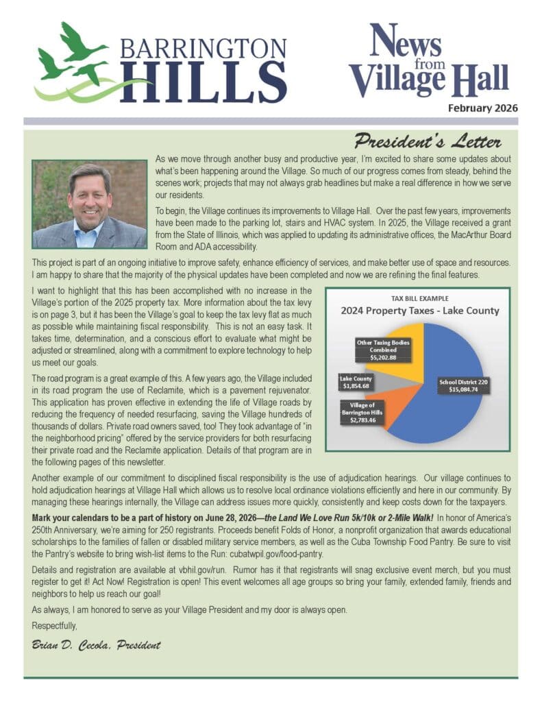 Newsletter February 2026 Posted by Barrington Hills On March 5, 2026 Click this link to download the most recent newsletter.