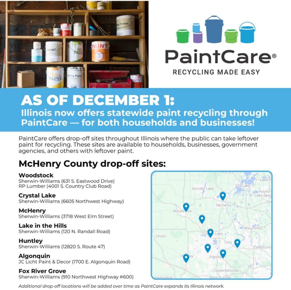 Beginning December 1, 2025, the State of Illinois has enacted its Paint Stewardship Initiative, a paint recycling program operated by PaintCare.